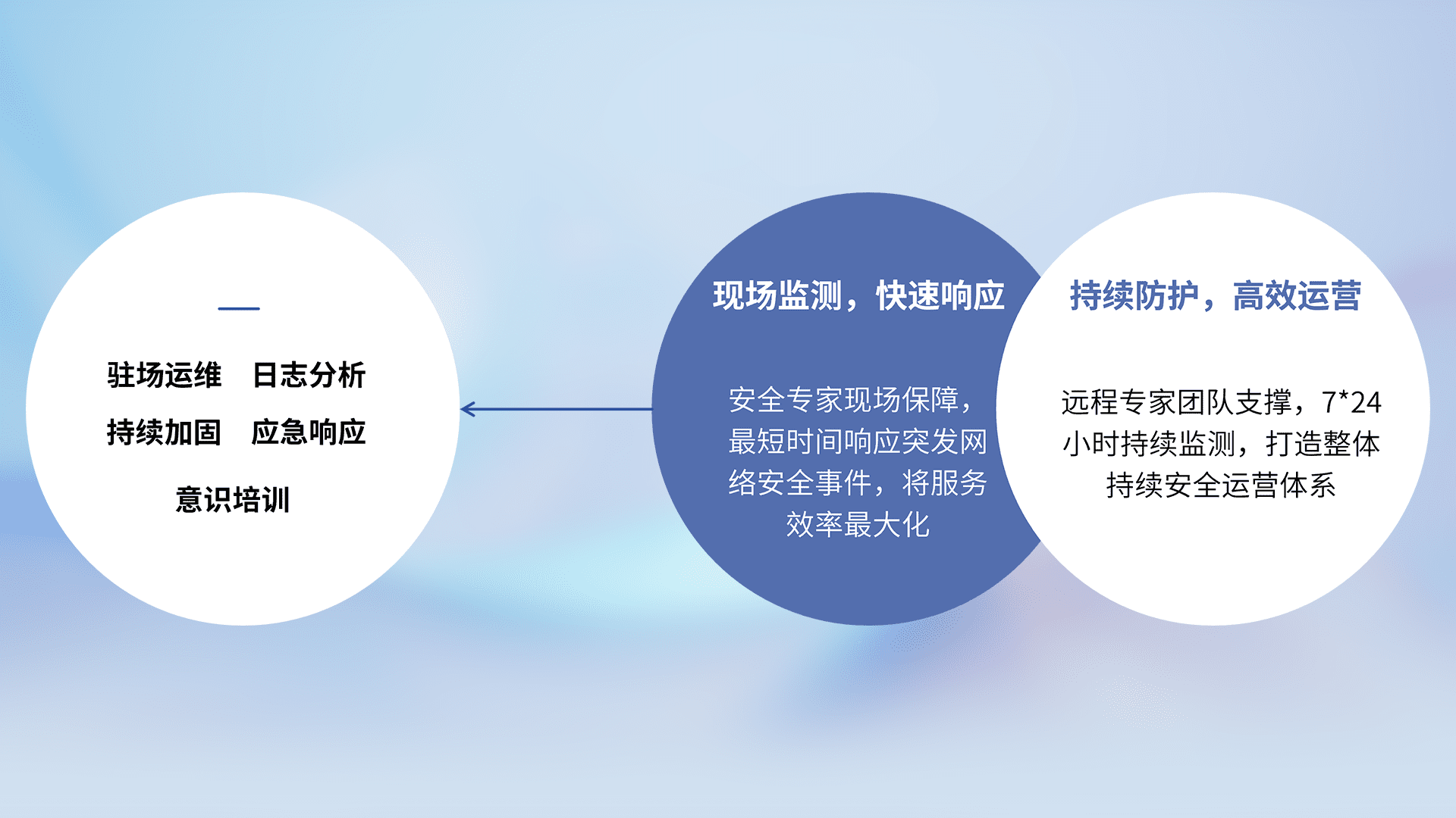 7X24小时持续监测安全事件,保持安全策略有效性,降低资产脆弱性风险,,精准拦截黑客攻击,,,减少被黑客利用的机会,,,,第一时间遏制,,降低损失。。。。